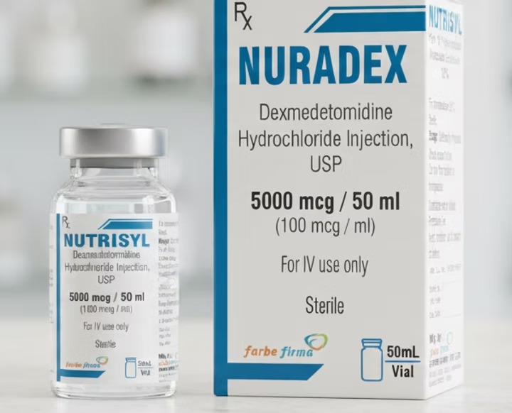 Dexmedetomidine Hydrochloride Injection is a sterile injectable solution providing sedation, anxiolysis, and analgesia without significant respiratory depression. It is widely used for sedation of mechanically ventilated patients, procedural sedation, and as an adjunct in anesthesia.